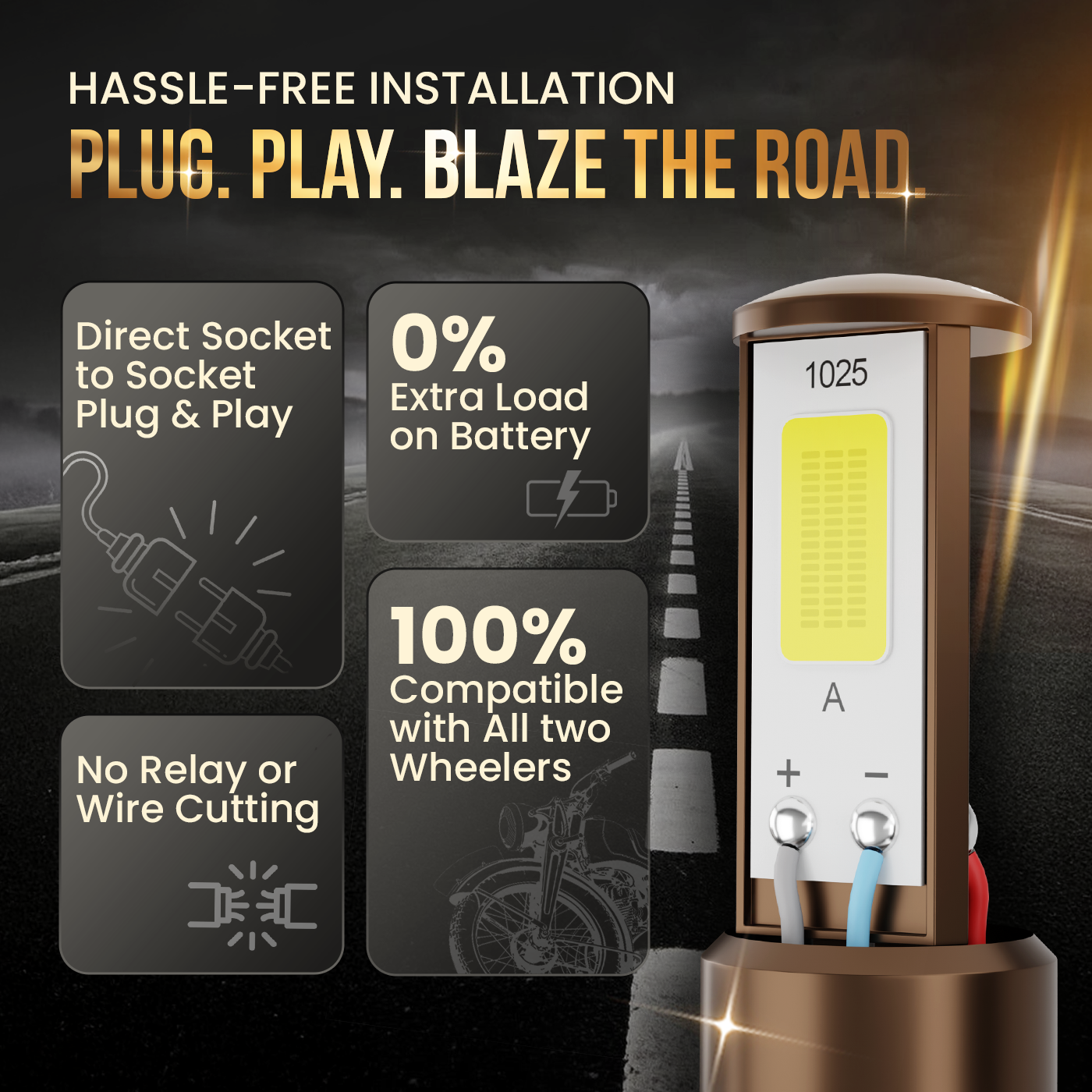 PRIVON 60W LED Headlight for Bike – 7000LM, 6000K White Light | Plug & Play | 1-Year Warranty | Ultra Bright LED Light for Night Ride (H4, pack of 1)