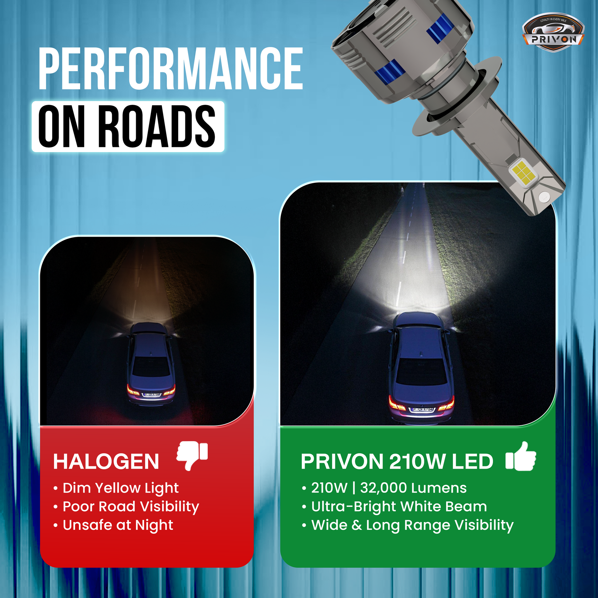 210W white LED Headlight bulb for car | 21000LM | 6500k | 02 years replacement guarantee